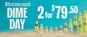 Get TWO 2g Dime Disposable Vapes for $79.50 on the 10th of each month. Online orders must be picked up on the 10th of the month to be valid for special pricing. *Restrictions apply, while supplies last.