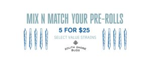 Pick up 5, 1g prerolls for $25 ($5 each). Choose from select brands and strains. *Restrictions apply.