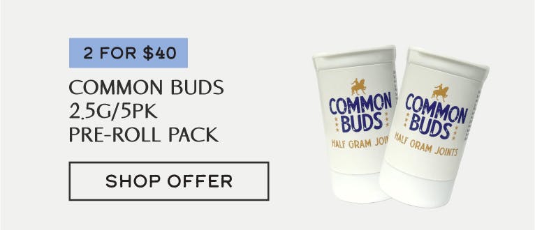 Two Half Gram 10 Packs for $75 ($3.75/preroll). Mix and Match eligible 10 packs from Common Buds! *Restrictions apply.