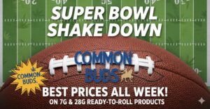 To celebrate the Patriots going to the Super Bowl, all Common Buds, pre-ground Ready-To-Roll are available at the lowest prices for the entire week leading up to Super Bowl Sunday.
